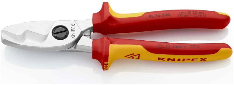 Knipex Kábelolló kettős vágóéllel krómozott VDE 200 mm (95 16 200)