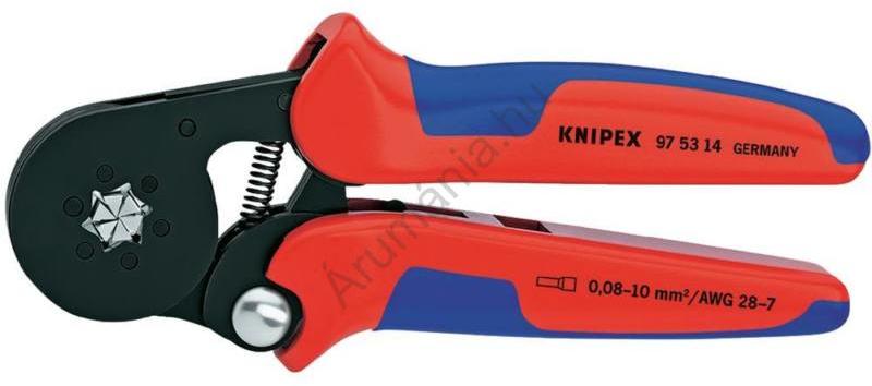Önbeállító krimpelő fogó érvéghüvelyekhez oldalsó bevezetéssel, Knipex 97 53 14