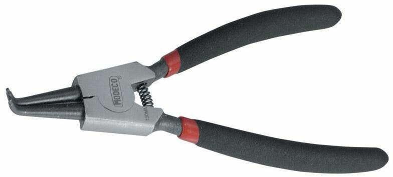 Modeco hajlított belső seeger fogóA Modeco szerszámokban a szakemberek és a barkácsolók egyaránt megbízhatnak. 25 éves tapasztalatuknak köszönhetően minőségi, ergonomikus, tartós kézi és elektromos szerszámokat, pontos és egyszerűen használható mérőeszközöket, valamint biztonságos védőeszközöket gyártanak Európában és a Távol-Keleten. Modeco hajlított kivitelű belső zégergyűrű fogó.