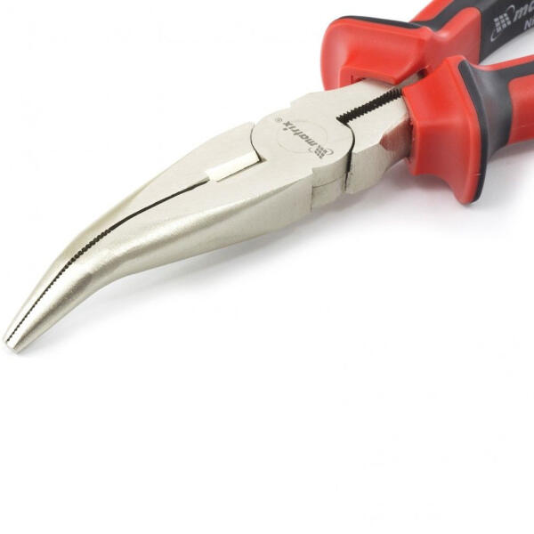 A MATRIX NICKEL ívelt, nikkelezett hosszú orrfogó egy robusztus és megbízható kéziszerszám, amely sokféle szerelési és javítási munkához alkalmas.